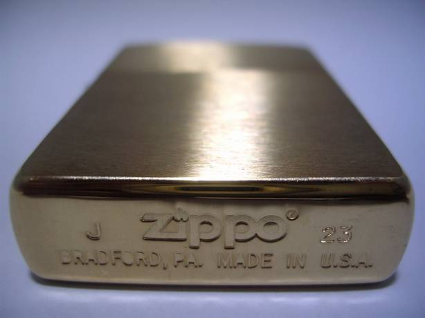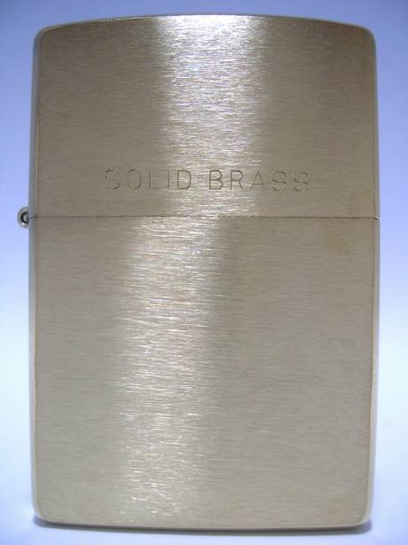 | Solid Brass独自の刻印パターン(1932 Zippo 19**)から他のZIPPOと同じ刻印パターンへ変更(#200FBと同じ刻印)された。SOLID BRASSの文字は縦長に。 | SOLID BRASSのフォントが変更。 | ボトム刻印が変更(Zippoロゴが太くなり、®マークは小さくなった。又、BRADFORD〜U.S.A.の刻印幅が狭くなった)。 |